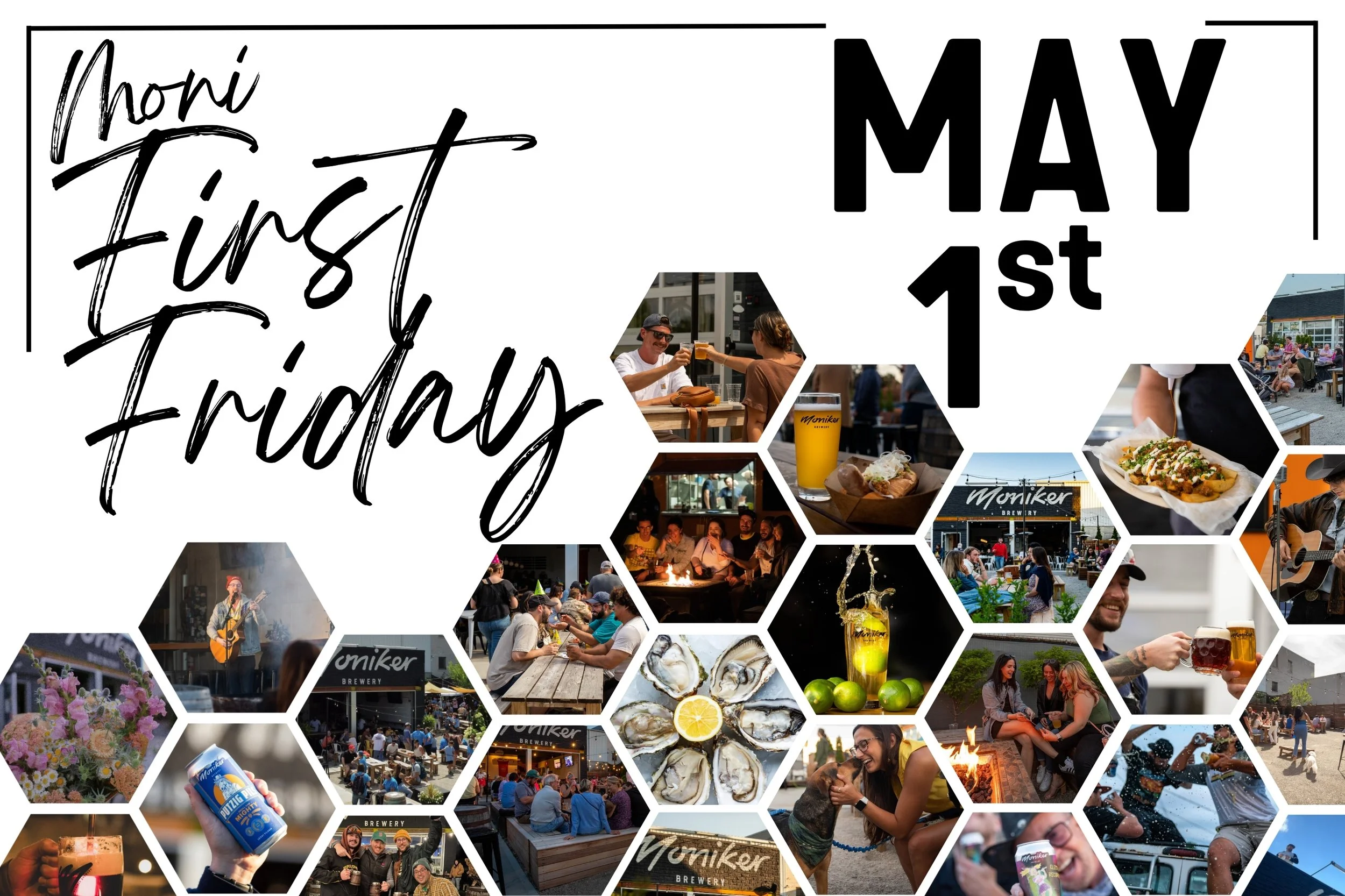 Join us Friday, May 1st, for Moni First Friday! Live music, raw bar, bbq, sweets, flowers, and a whole lot of beer!